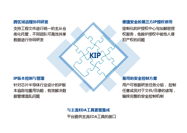 基于知識(shí)產(chǎn)權(quán)保護(hù)的協(xié)同研發(fā)與IP數(shù)據(jù)管理平臺(tái) 用戶友好的IP追溯與重用系統(tǒng),支持網(wǎng) 頁端操作,提供IP版本標(biāo)定,發(fā)布,重 用,文件倉(cāng)庫管理,主干分支操作,記 錄回滾,文件對(duì)比, IP加解密及授權(quán)管理等功能。